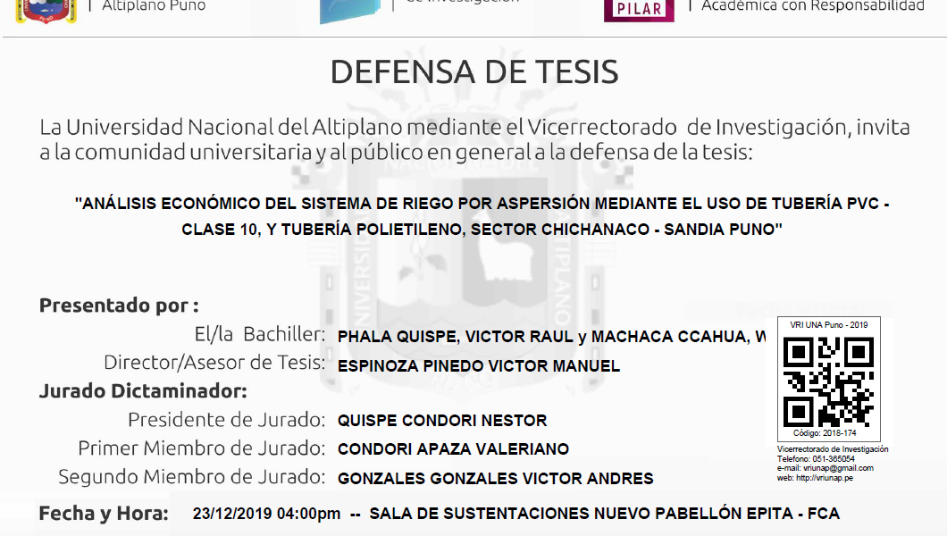 «ANÁLISIS ECONÓMICO DEL SISTEMA DE RIEGO POR ASPERSIÓN MEDIANTE EL USO DE TUBERÍA PVC – CLASE 10, Y TUBERÍA POLIETILENO, SECTOR CHICHANACO – SANDIA PUNO» PHALA QUISPE, VICTOR RAUL y MACHACA CCAHUA, WASHINGTON Fuente: Plataforma PILAR UNA-Puno Quieres saber mas sobre los tramites para obtención de grados, requisitos para los mismos y demás actividades accede […]