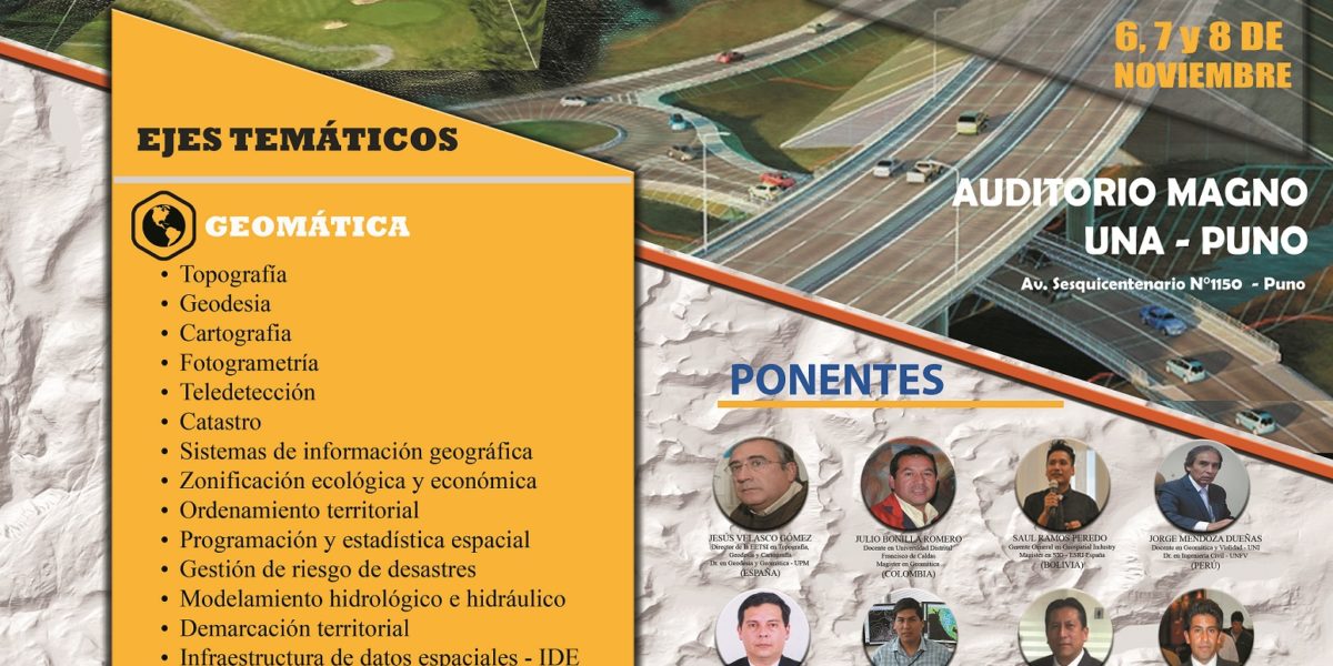 I CONGRESO INTERNACIONAL III CONGRESO NACIONAL DE INGENIERÍA TOPOGRÁFICA Tercer día de Ponencias Ing. Augusto Isrrael Ticona Baldarrago (EPITA) «Análisis e interpretación de la fisiografia del terreno en el Valle de Omate» Dr. German Belizario Quispe (UNA Puno) Investigación «Comportamiento de la resistencia a la compresión simple del concreto en pavimiento rigido en condiciones extremas caso en Puno» […]